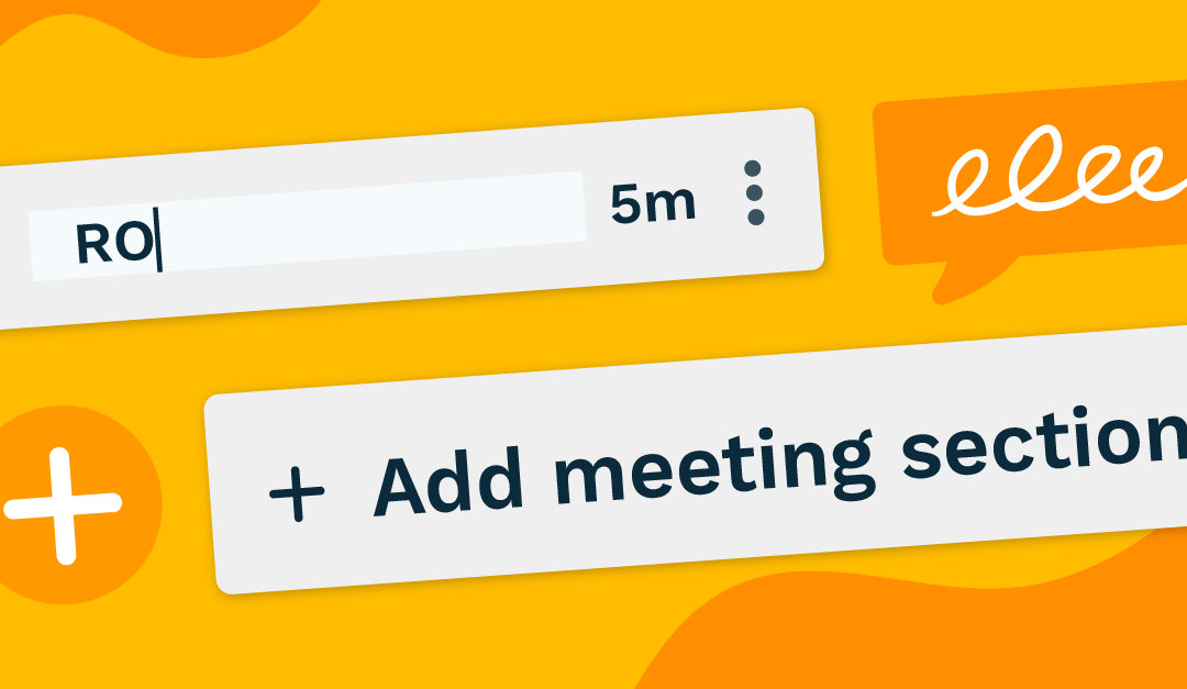 Bloom offers fully-customizable meeting agendas as part of the meeting experience. You can add as many sections as you need, rename them, and assign time-limits to keep the meeting moving in the right direction. This basic necessity, organizing and optimizing meeting time, can translate to thousands of salary dollars saved each time you meet. Game changer? We think so.