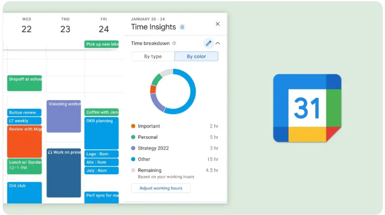 Have Google calendar? Take time blocking one step further and create color-coded labels for different events on your calendar. At the end of your week, you can review your time insights to see where you’re spending most of your time. This can help with future planning.