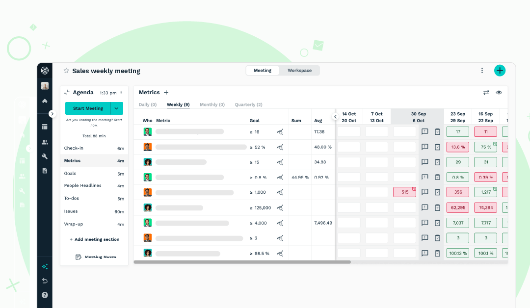 For Safari users, the metrics table now appears correctly during meetings. We also fixed issues where personal goals weren’t updating in real-time and new workspaces didn’t show up in the side navigation. Now, everything runs smoothly, just as it should.