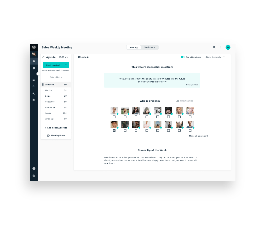 🧠 Bloom tip: Download The ultimate better meeting playbook for effective meeting agendas and best practices when it comes to running meetings.