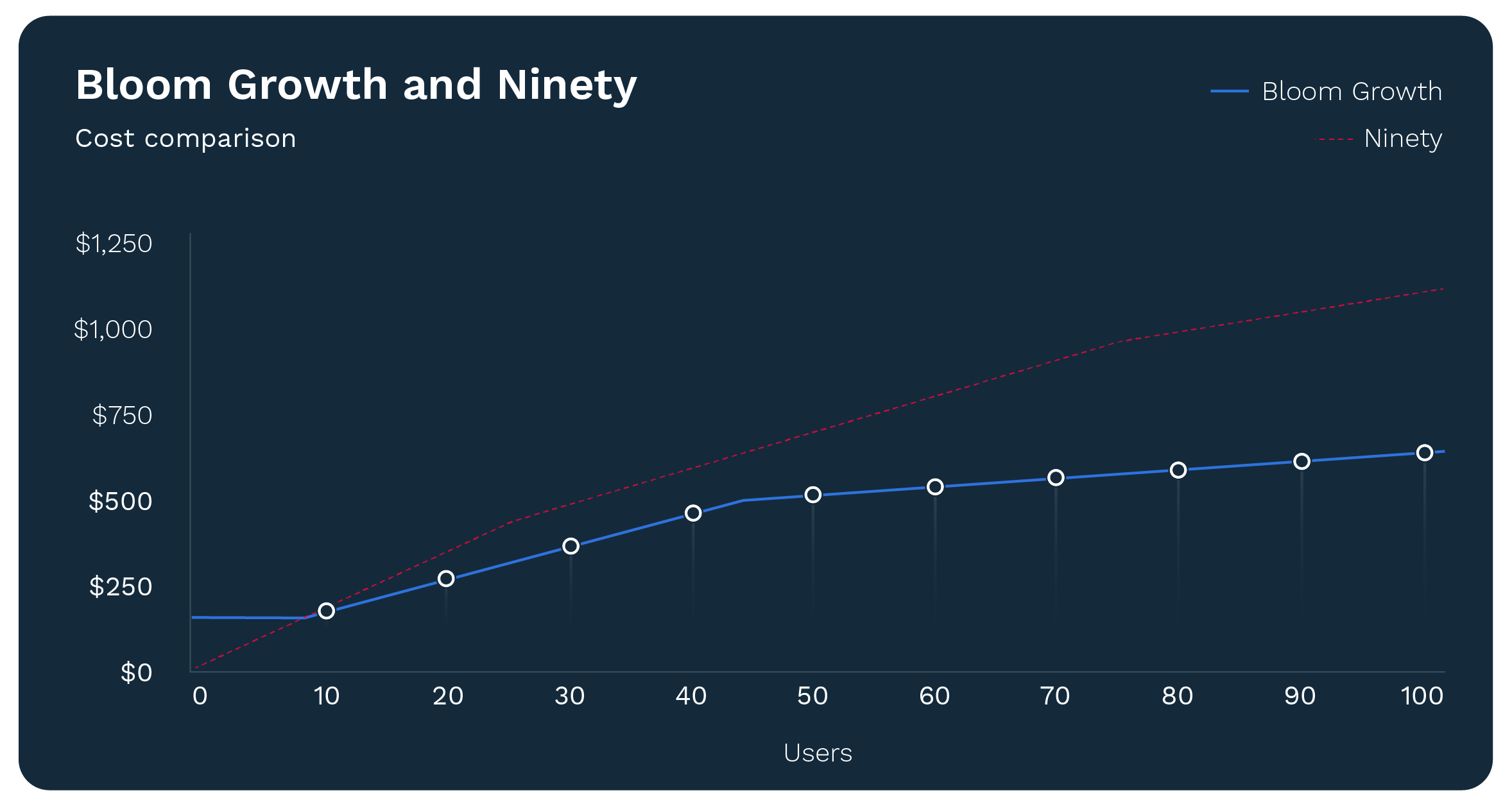 Bloom vs Ninety – cost comparison graph by Bloom Growth | Oct 31, 2024 Bloom vs Ninety - cost comparison graph