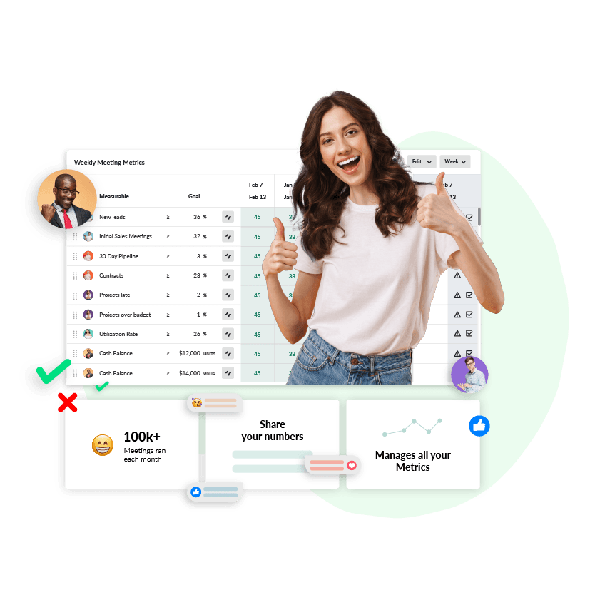 Automatically share your Metrics between your team’s workspaces without having to double your workload by inputting KPIs twice. During your Weekly Meeting, Metrics is automatically displayed at the right time with the right data.